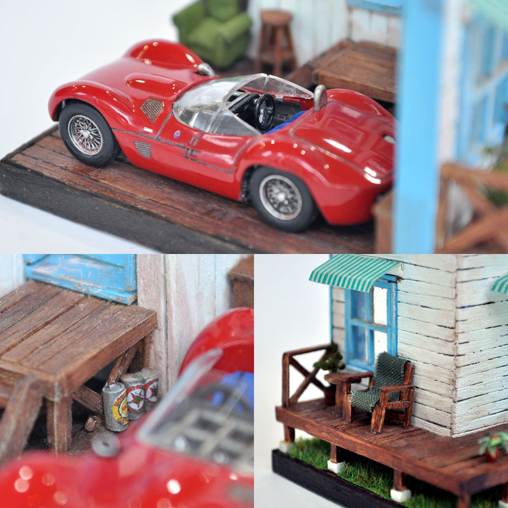 Diorama (coches en miniatura ya pegados y fijados a la obra de arte)