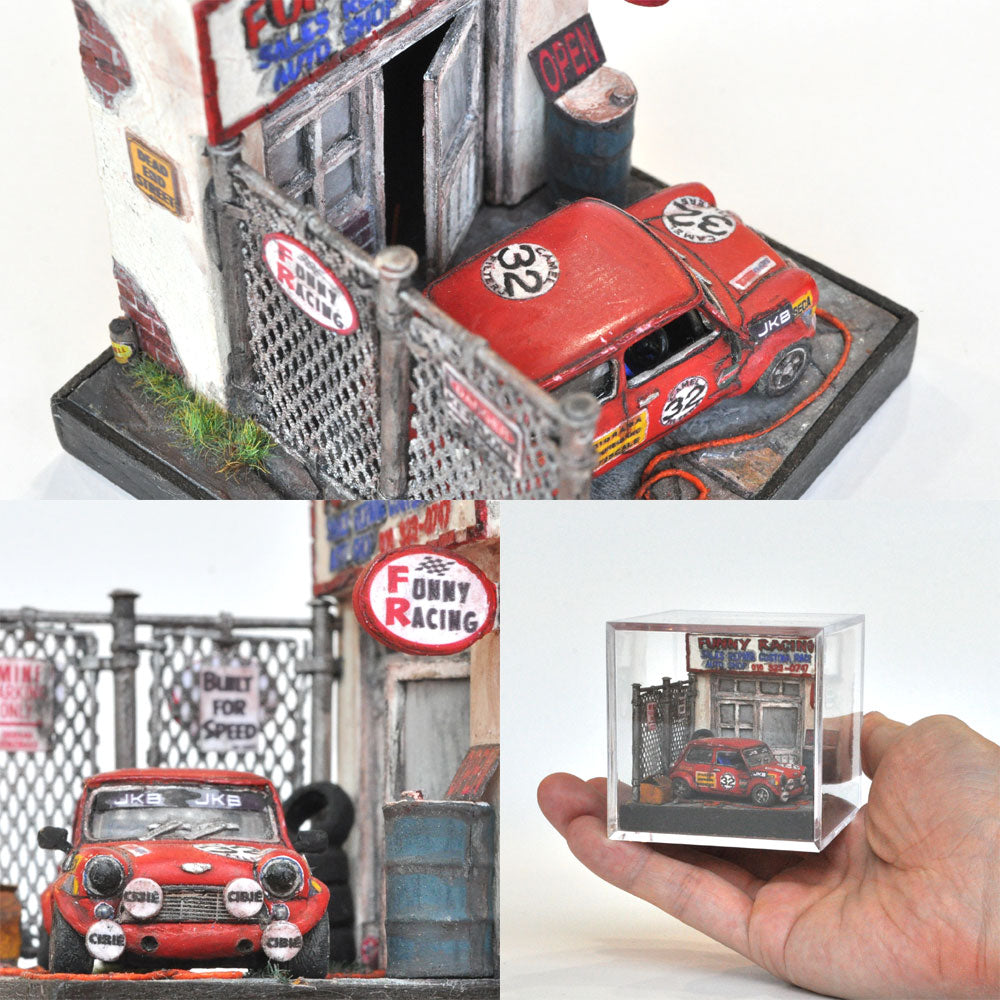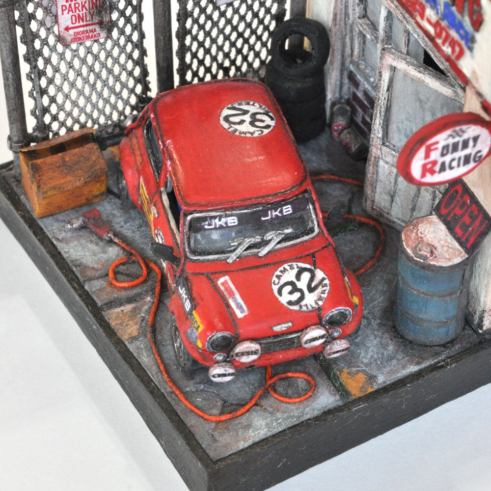 Diorama (coche en miniatura ya pegado y fijado a la pieza)