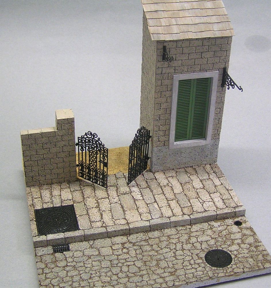 Cuidadosamente elaborado con cartón de 0,6 mm y relleno con tapas de hierro (alcantarillas), tapas de canaletas y puertas.