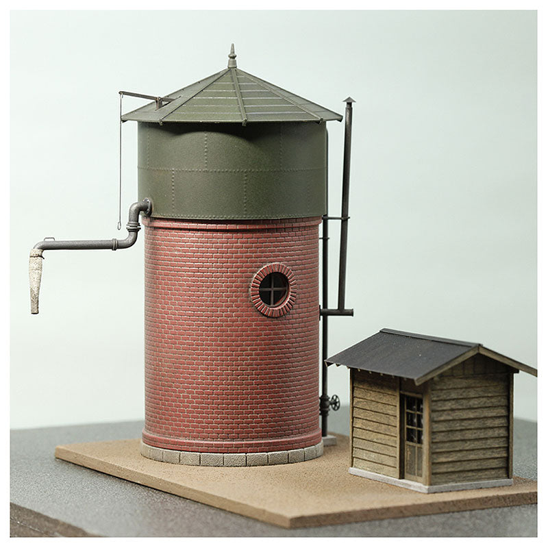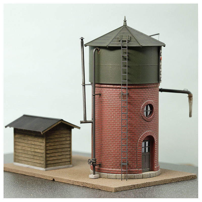 La torre de agua de ladrillo rojo, con su apariencia de la era Meiji, ha sido modelada a escala 1/87 por "Kobo NANA ROKUNI".
