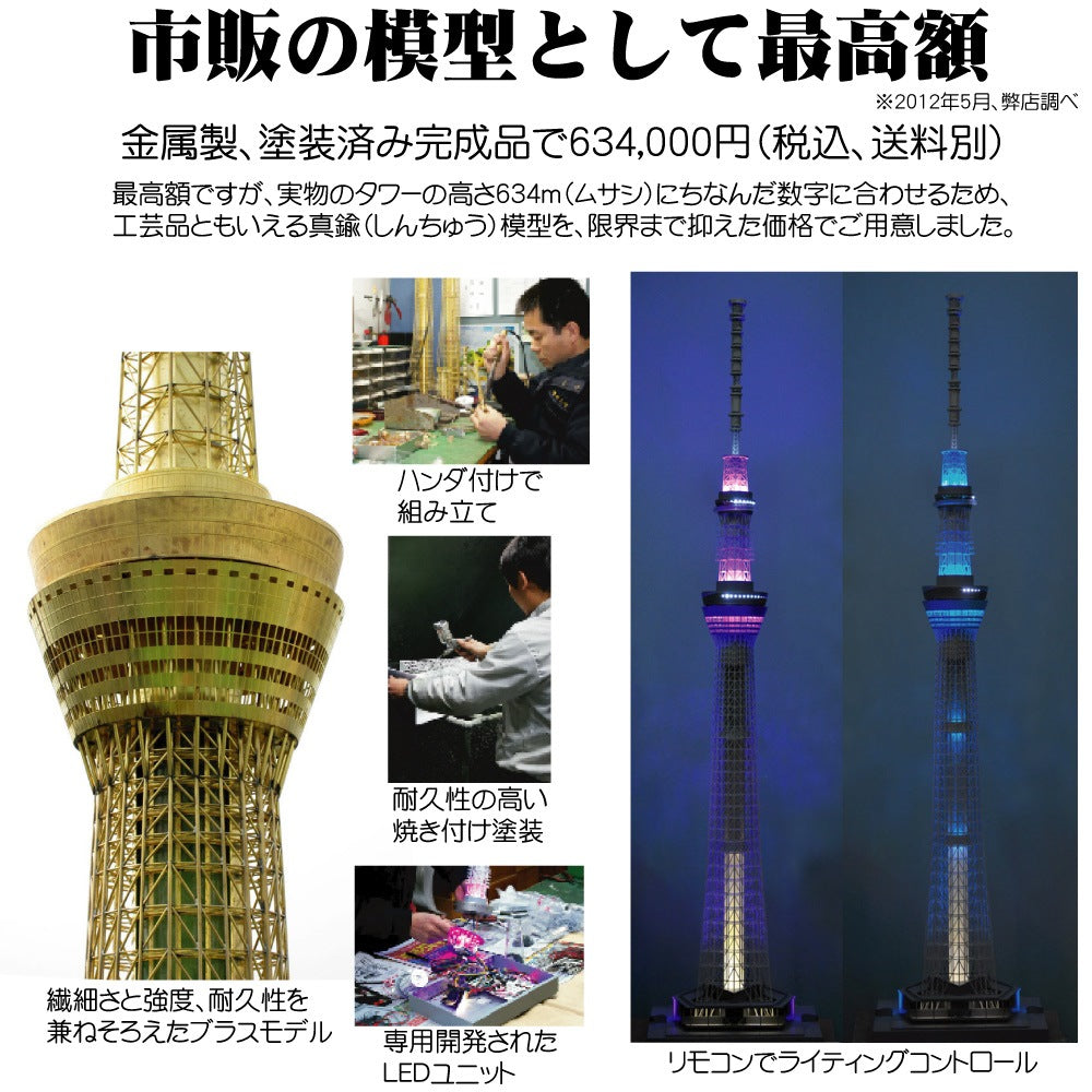 Este modelo es el modelo comercial "más grande" y "más caro" de Tokyo Sky Tree. (A partir de mayo de 2012, según nuestra propia investigación. Este modelo es el modelo comercial "más grande" y "más caro" del Tokyo Sky Tree.