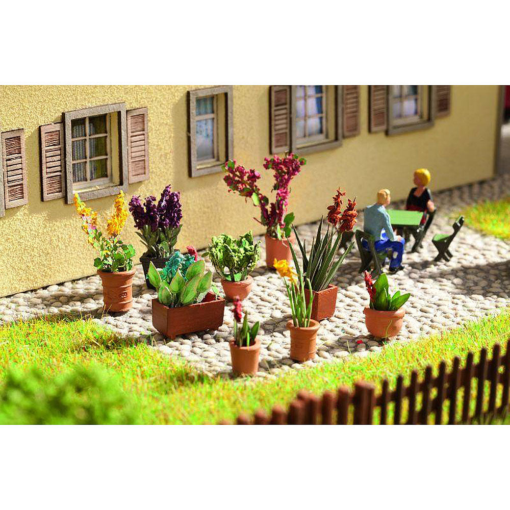 9 maceteros de flores en maceta : Set completo pintado Noch HO(1:87) 14012