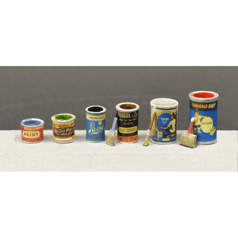 Contenido: 12 latas de pintura, 6 pinceles, 12 calcomanías (6 diseño civil, 6 diseño de logotipo militar)