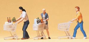 Compradores empujando carritos de la compra: Preiser - Producto terminado HO (1:87) 10488