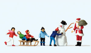 Set de Navidad - Papá Noel, Niño y Muñeco de nieve: Preiser - Set de producto terminado HO(1:87) 10626