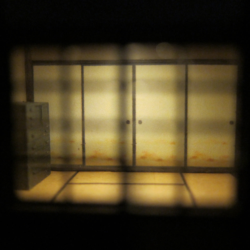 El chabudai y el chadansu no se pueden perder. Encima de la caja de té hay una radio de transistores. Sobre el escritorio hay una pila de papel manuscrito, rodeada por un revoltijo de manuscritos arrugados y no escritos.