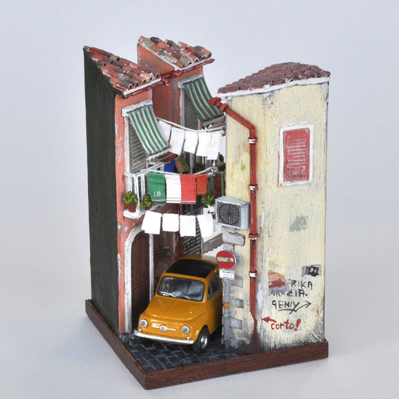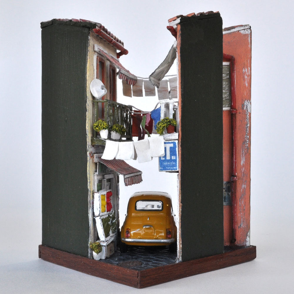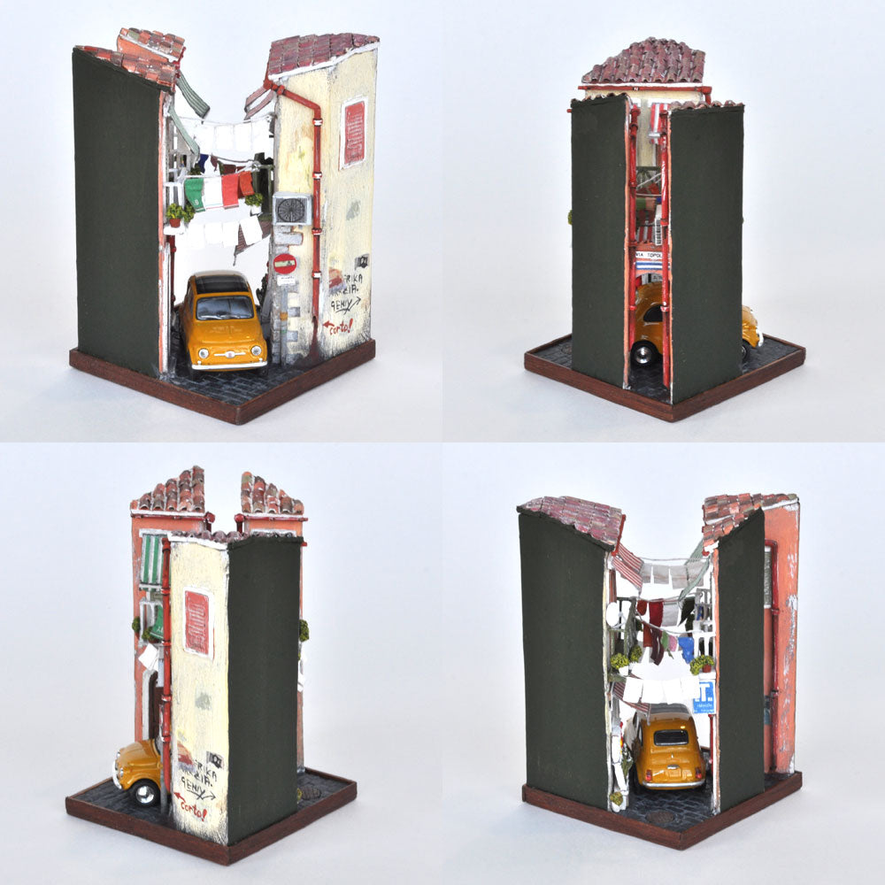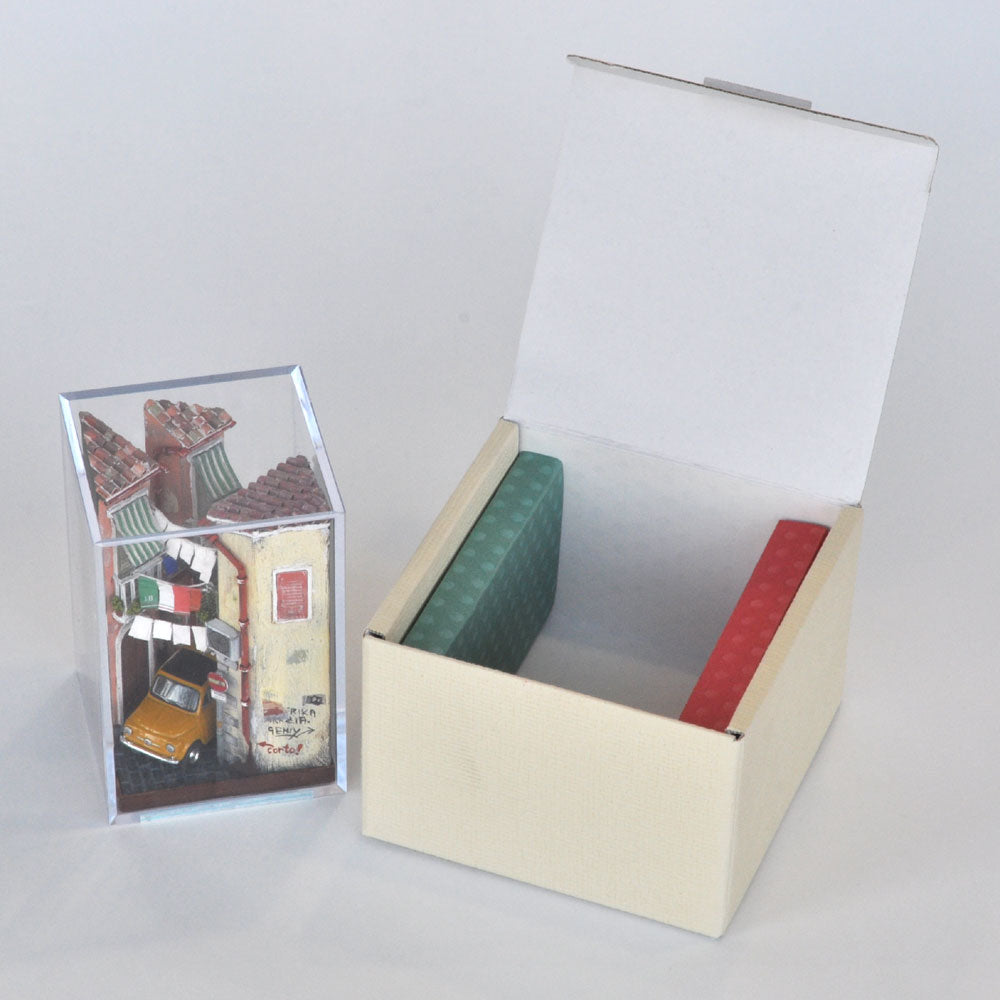 Diorama (el coche en miniatura se atornilla desde abajo y se puede quitar con el destornillador incluido)