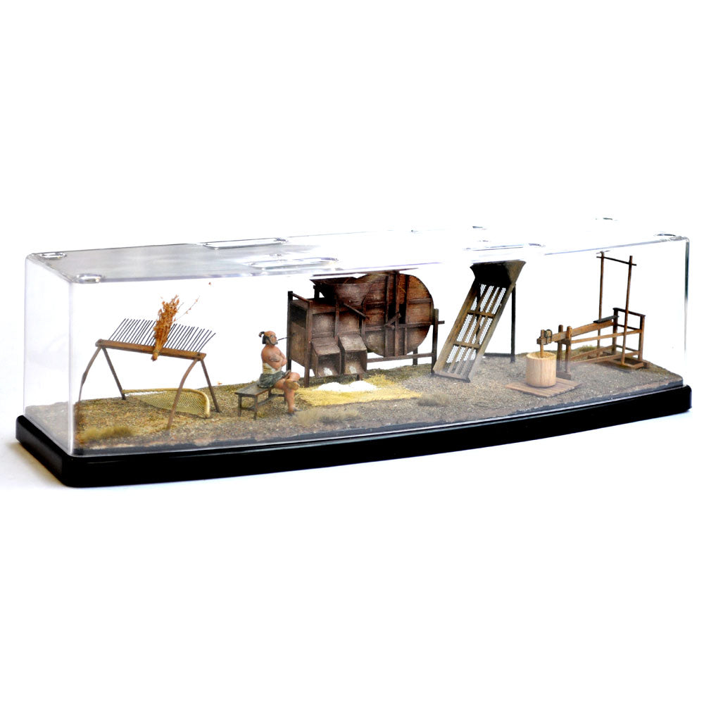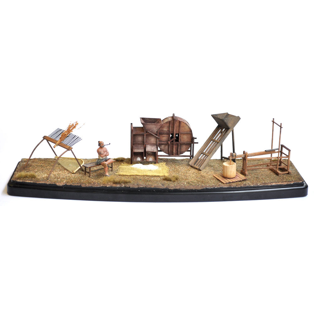 Reproducción de trilladoras y aperos agrícolas del periodo Edo.