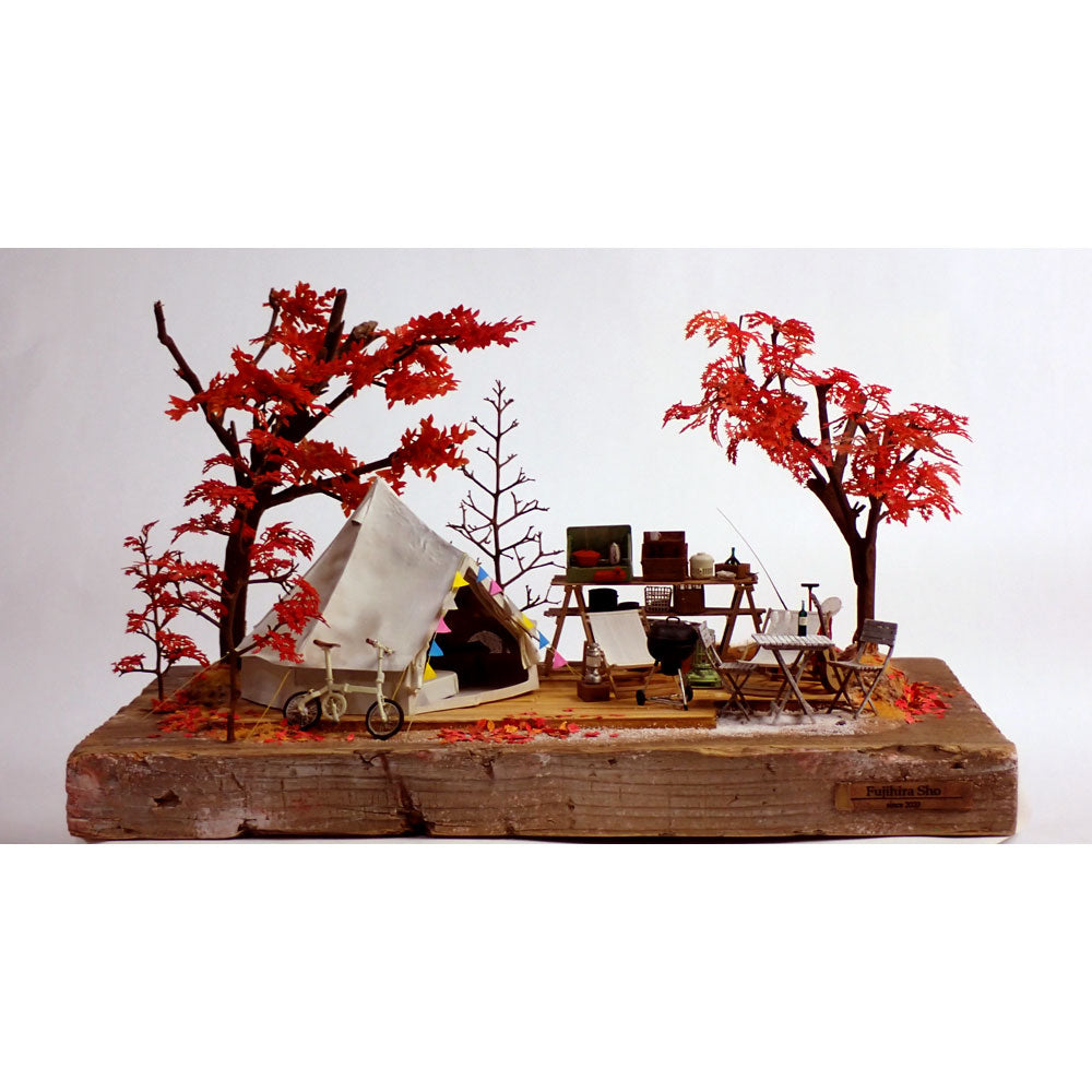 Este diorama se basa en el motivo del glamping en hojas de otoño.