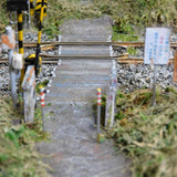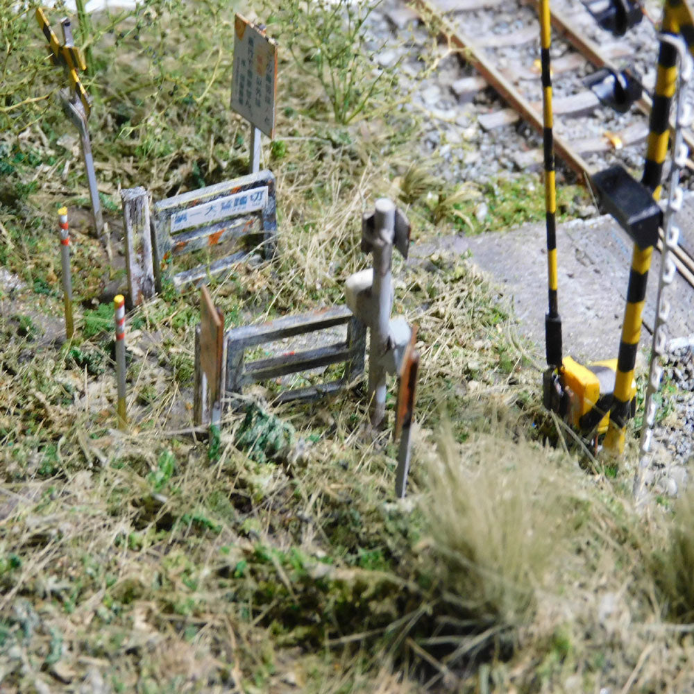 The sleepers are carved from square cypress sticks. The various signs were photographed from the front, reduced in size using a computer, modified to be easy to see even when reduced in size using image software, then pasted onto 0.3mm thick copper sheets and soldered to 1mm copper square bars.