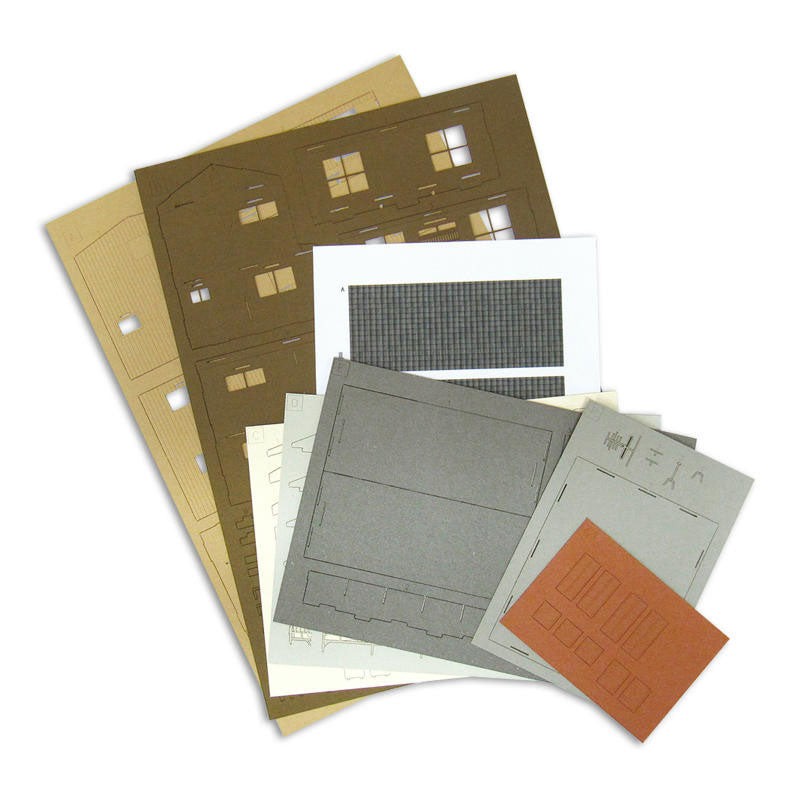 Contents: Laser sheet A-G (7 sheets), Roof sheet (1 sheet), Plastic sheet (1 sheet), Assembly instructions