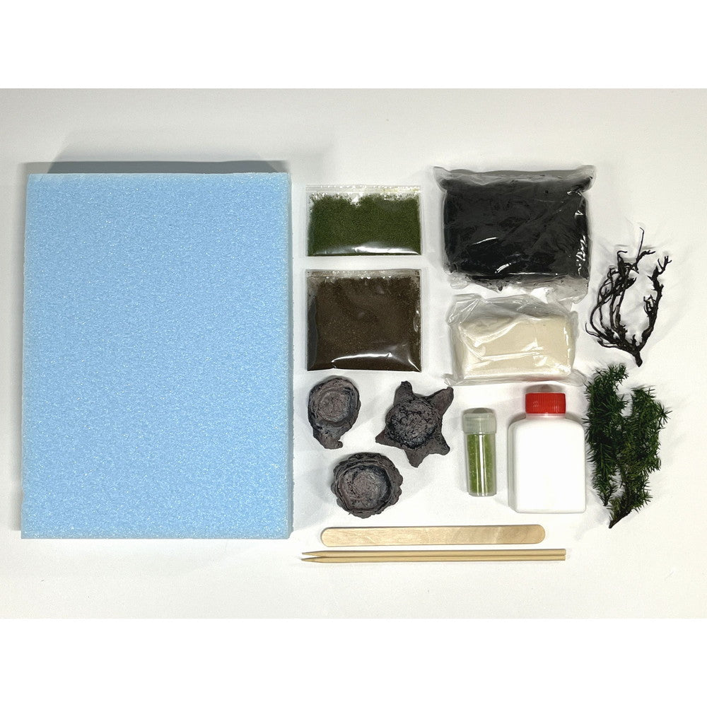 This kit completes a diorama base suitable for miniatures and models in the palm of your hand.