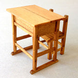Nostalgic wooden school desk and chair realistically reproduced in 1/12 scale.