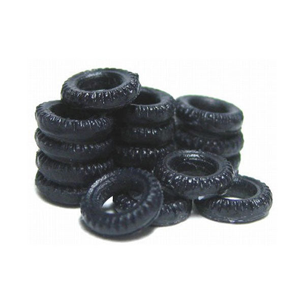 This set contains 16 individual tyres and 4 sets of 4 stacked tyres.