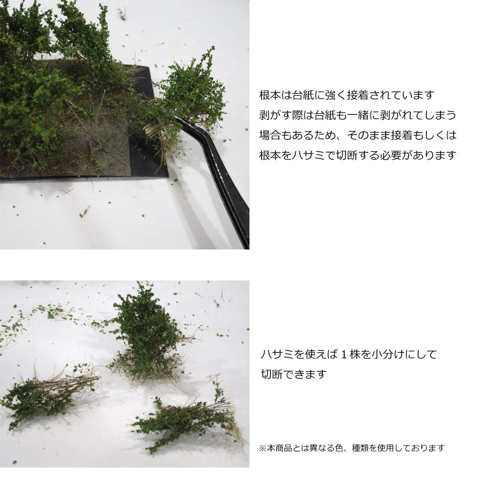 Note: The bushes are strongly glued to a single piece of paper. When removing the bushes, the backing paper may come off with them, so if you don't need the backing paper, cutting with scissors is recommended