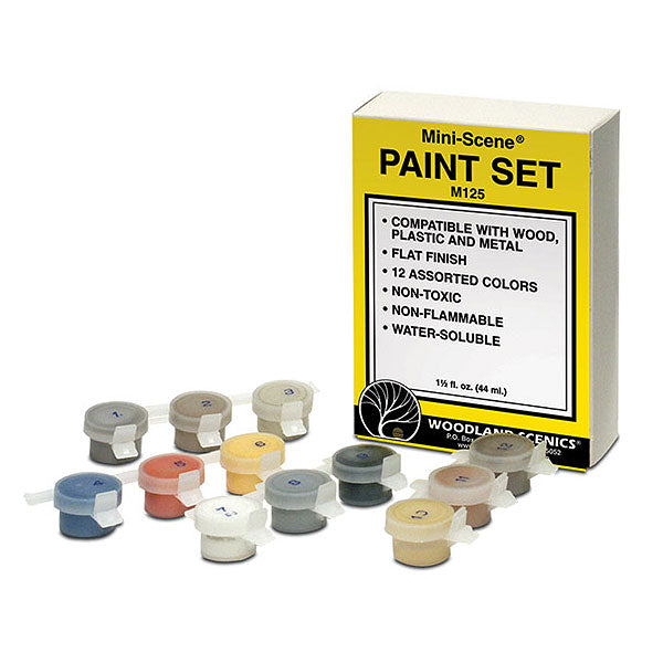This set of paints is ideal for use with Woodland's MINI-SCENE series of models, which can be painted on their own.