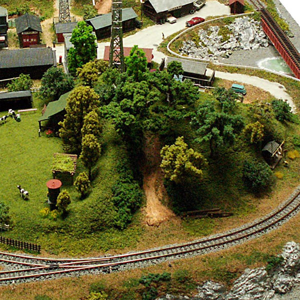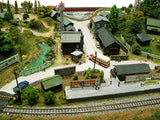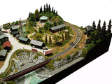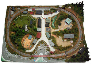 The layout is designed to allow N gauge model trains to run. As this is a local train line, a short formation of small to medium sized cars will be suitable. Model railway carriages and power packs are not included.