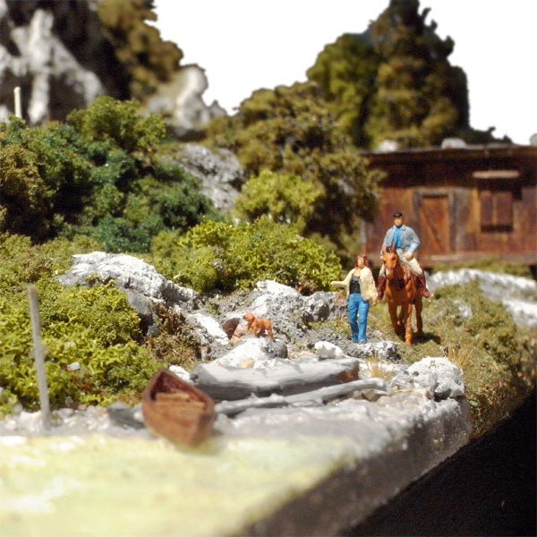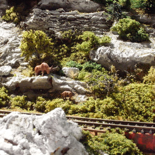 A fawn, probably born this year, and its parent, a moose, can be seen on the slight flatness of the rock face. The dog, unable to wait for the pair to get to the river, is also a very funny sight. What train would you add to this railway bridge?