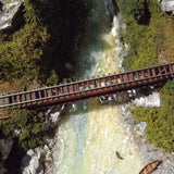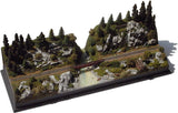 A cold river flowing out of a snow-covered mountain and a railway bridge crossing it. This diorama by Taguchi Kobo is based on the theme of a fleeting hot summer day in the harsh Canadian wilderness.