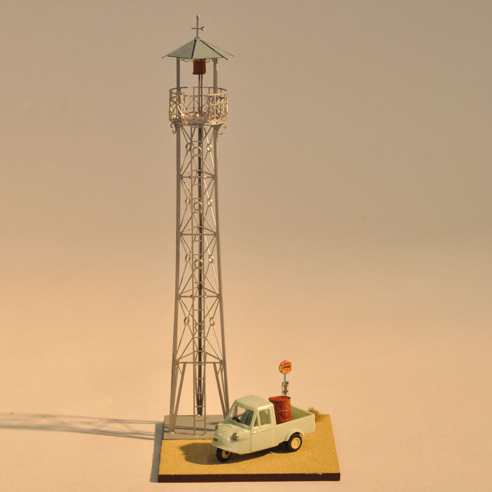 Three-legged fire lookout tower, blue roof: Toshio Ito, painted 1:87