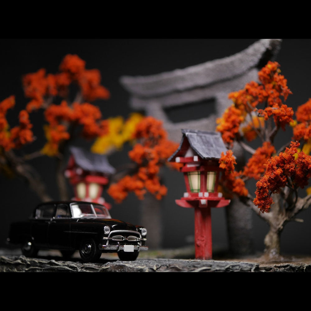 We have created a diorama to make use of the Toyopet Crown from Tomica Limited.