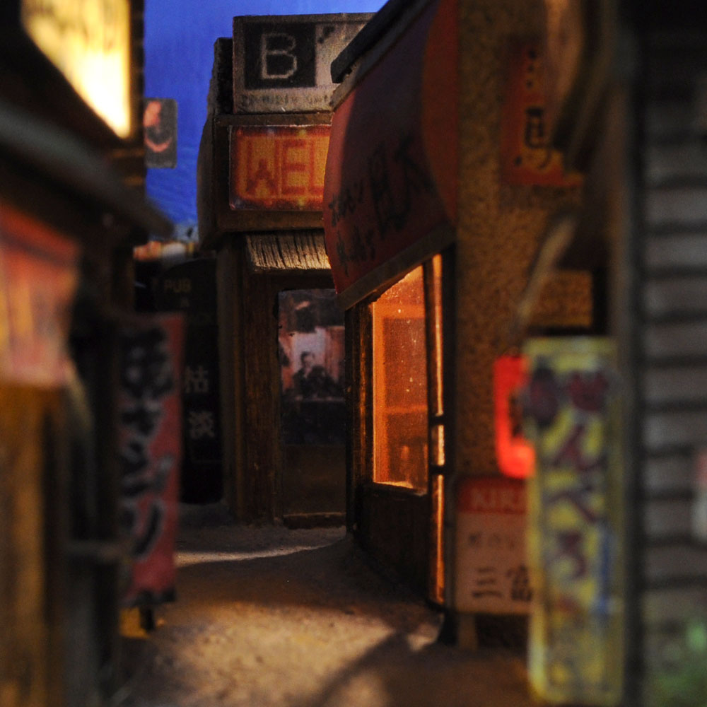 The alleyways are more zigzag than in "Drinking Alley 1 and 2", and the signs are placed on the roofs of the buildings.