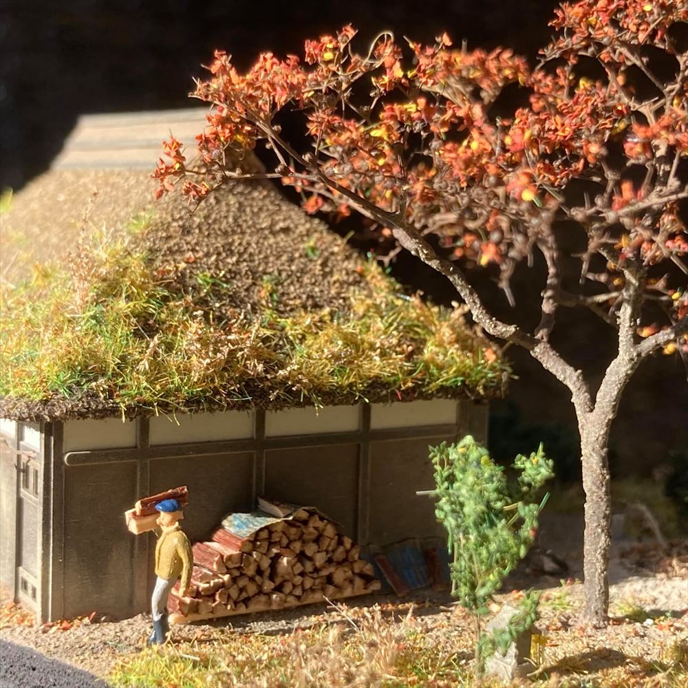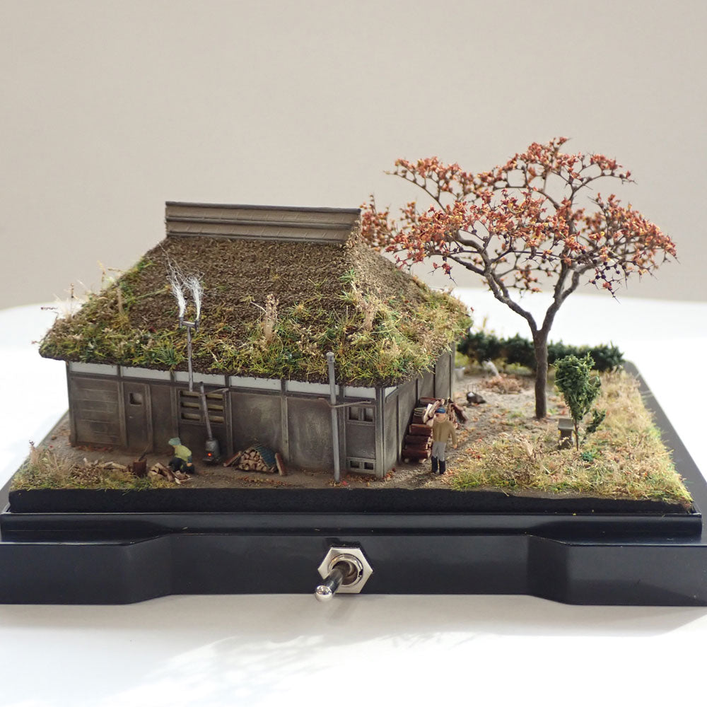 Straw-roofed farmhouse in autumn : Art Stage K - painted 1:150 size