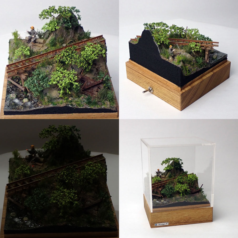 This is the work of Art Stage K who specializes in mini dioramas of model trains, mini cars, etc.