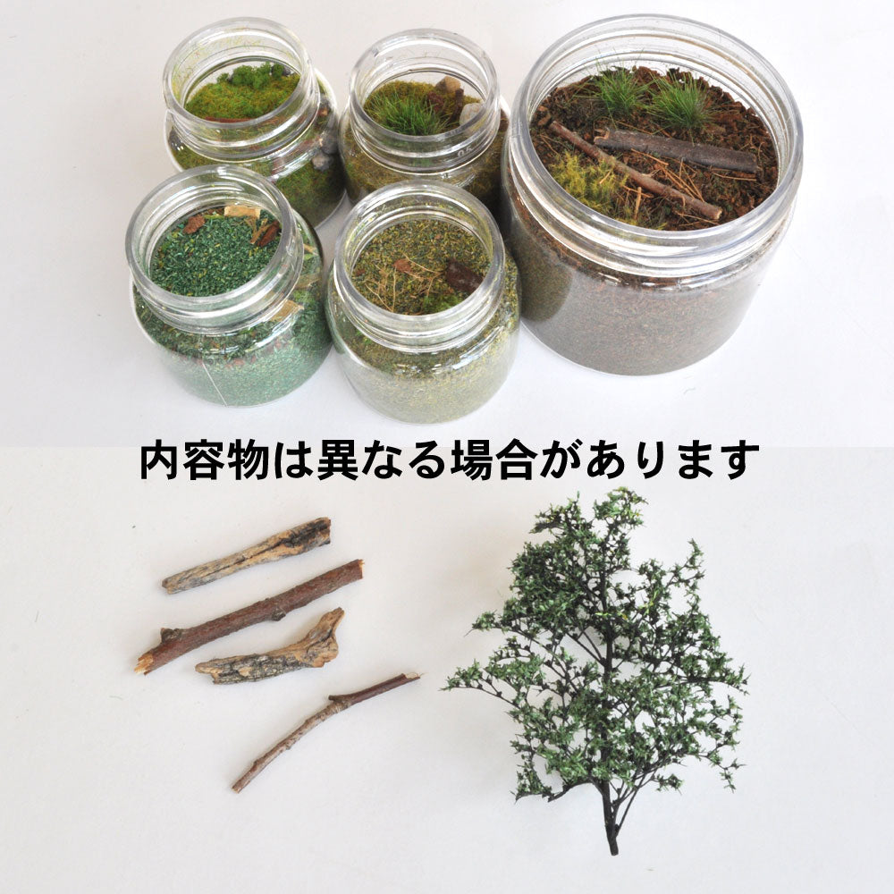 By randomly layering the materials from the small bottles on top of the materials from the large bottles as a foundation, you can easily create a natural ground scene.