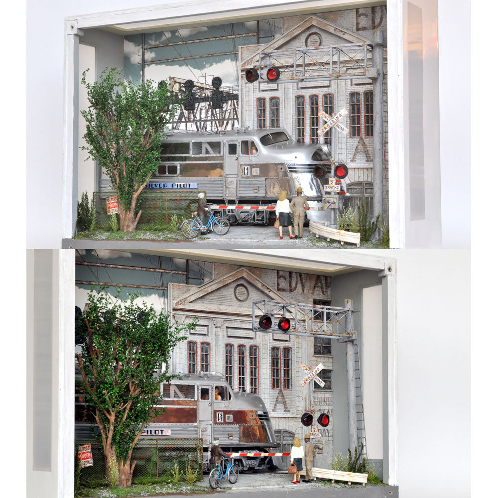 Remarks: Vehicles, full scratch. The crossing signal is made of the reflection of ambient light.