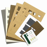 Set includes: Laser Sheet A-F (6 sheets), Roof/Signboard Sheet (2 sheets), Plastic Board (1 sheet), Assembly Instructions