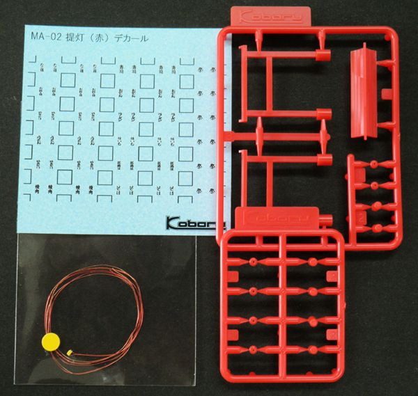 1 set of Chochin Hanging, 6 sets of Chochin (red), 1 sheet of decals, 6 pre-wired light bulb LEDs