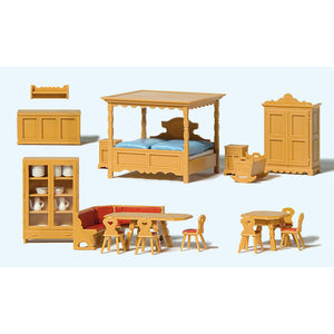 Country house furniture set (living room, dining room, bedroom): Preiser painted complete set HO(1:87) 17710