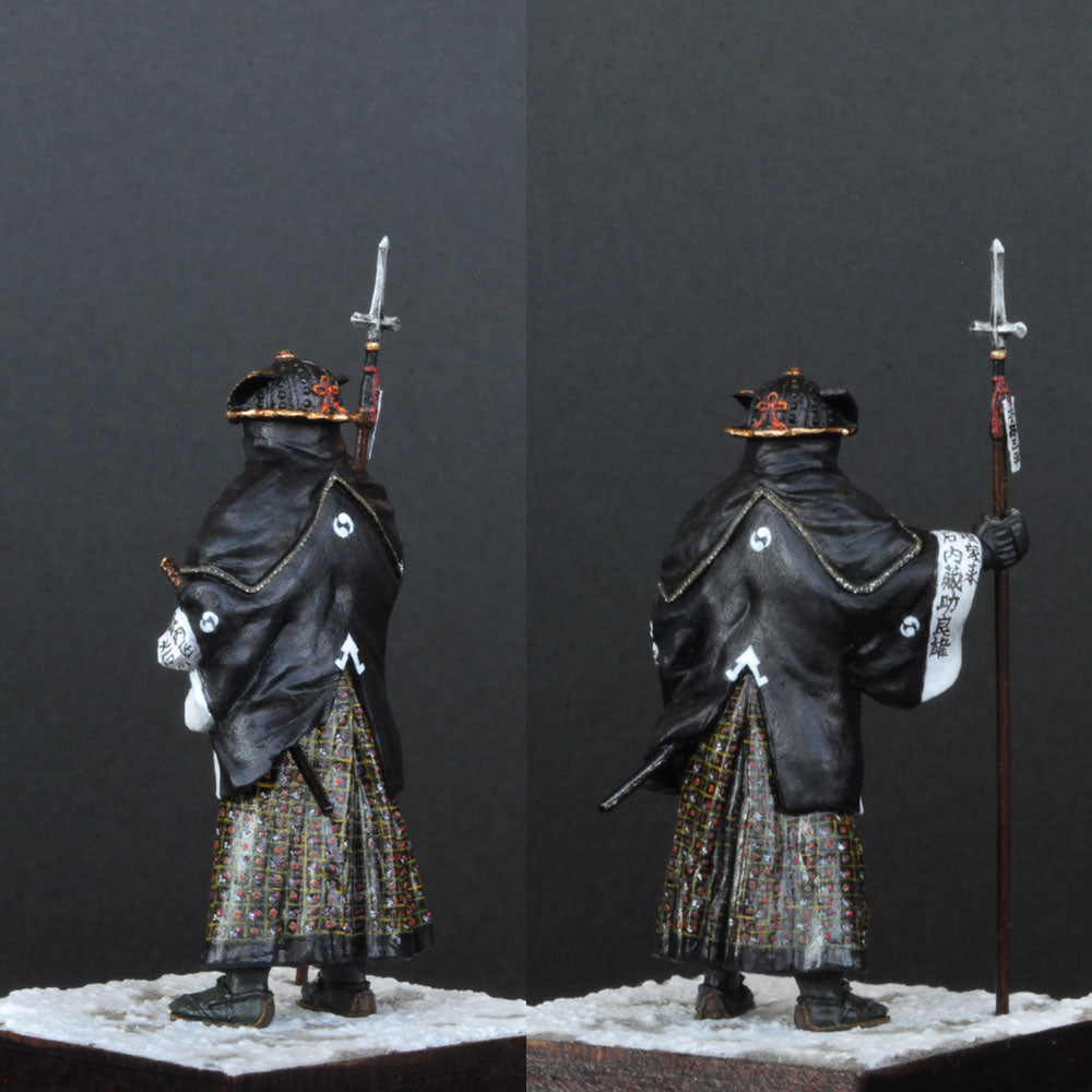 The base kit is a Tamiya plastic model (out of print as of February 2013) and the pose is the same, but the details have been reworked almost entirely, except for the hakama.