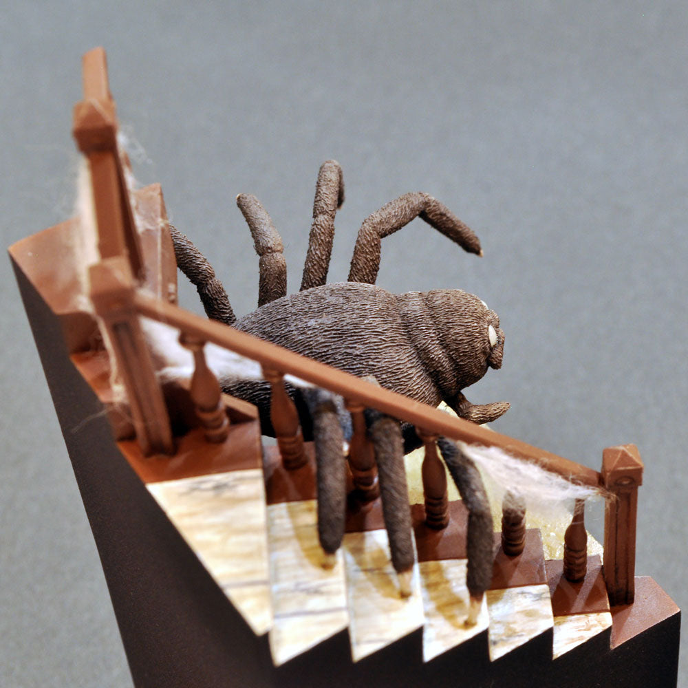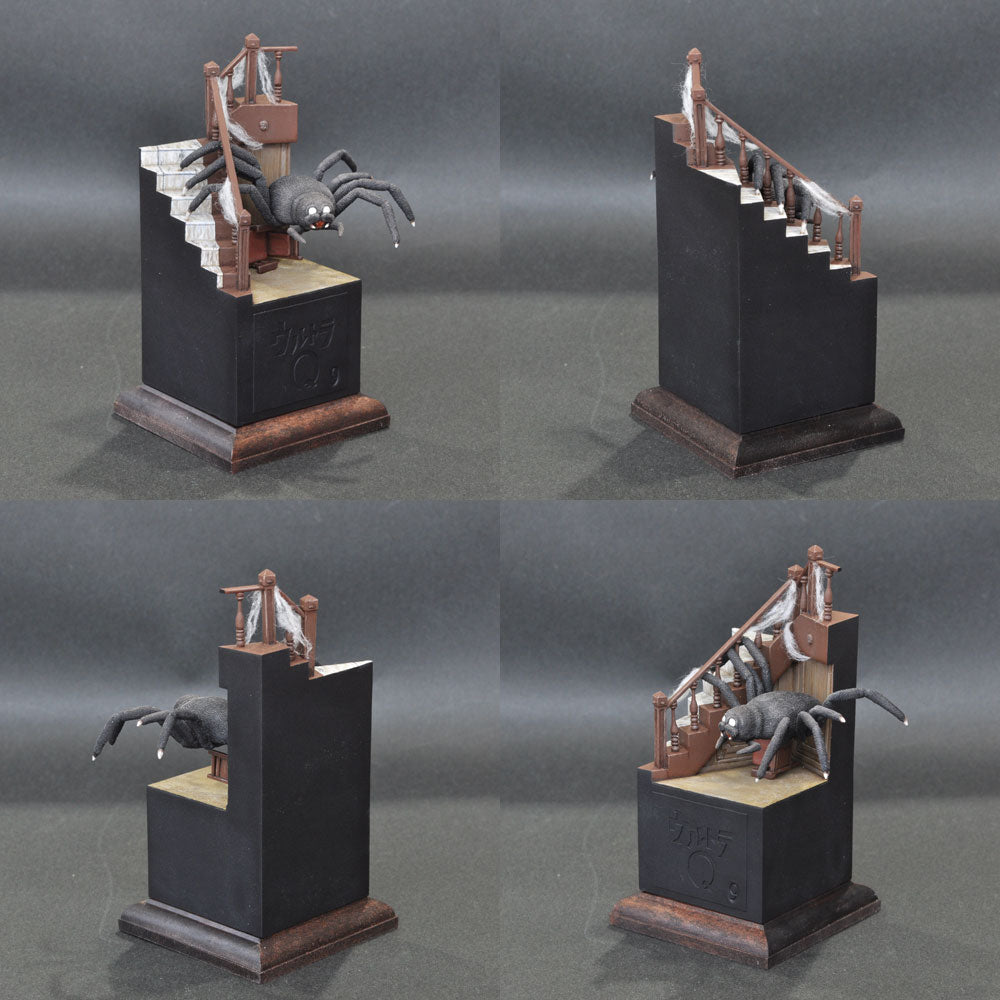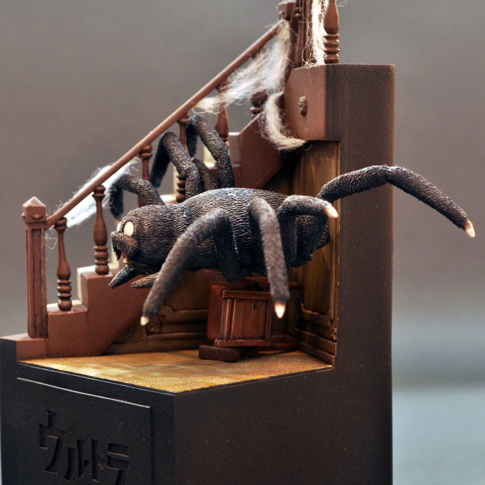 A scene from "Ultra Q", episode 9, "The Spider Baron" has been made into a palm-sized diorama and vignette by Gentaro Asaki.