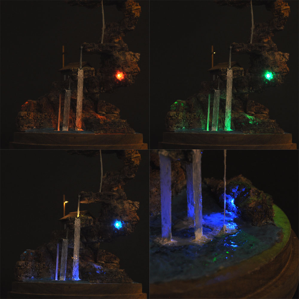 The LED lights on the piece change colour over time. You will be dazzled by the vivid gradations.