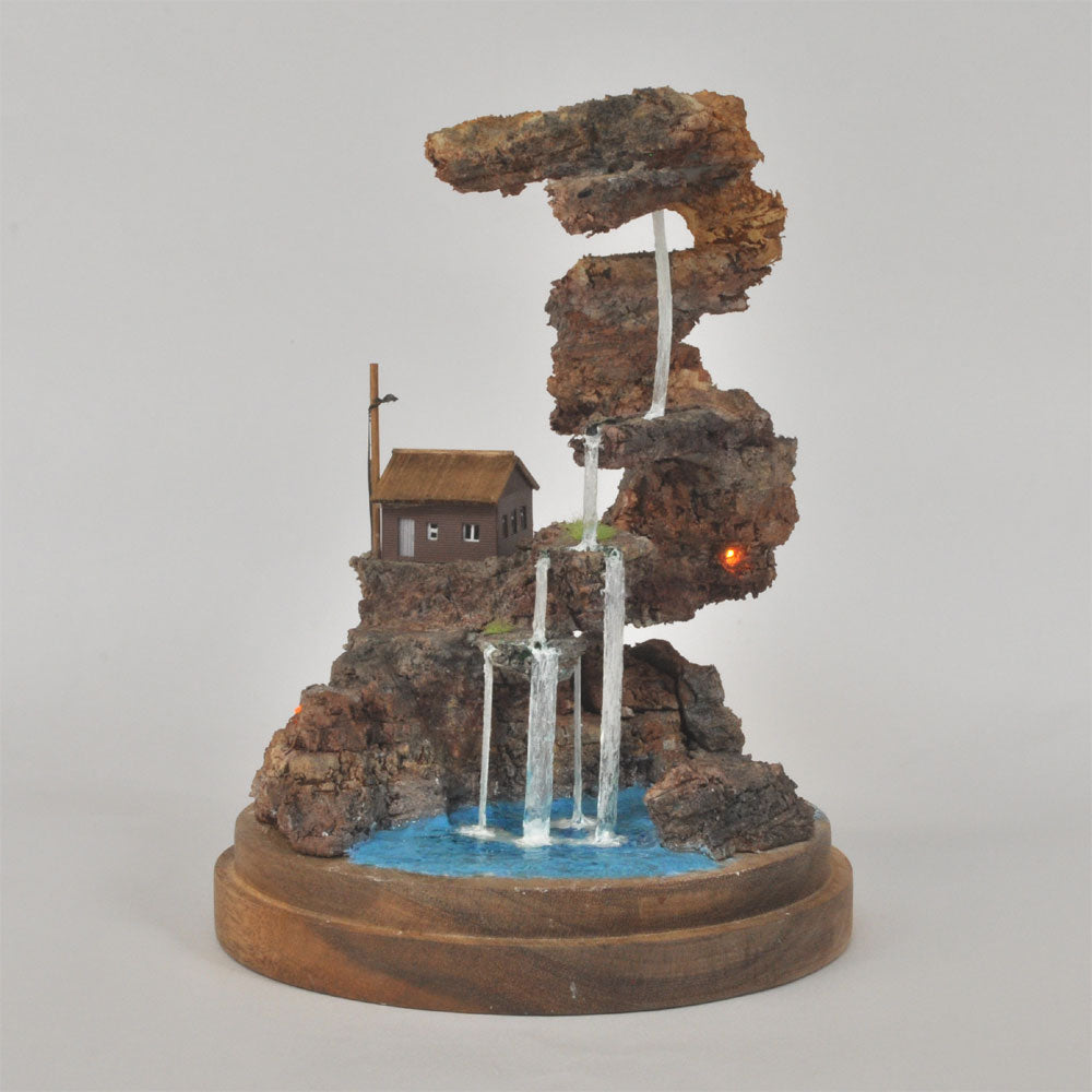 A view with a waterfall : Lion Model Sho Fujihira - Painted - Non-scale