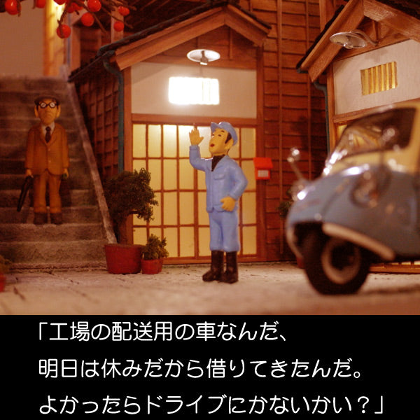 This is the first diorama in a series of 1:43 scale dioramas by lyrical diorama artist Takaki Yamamoto, who has been creating dioramas based on the townscapes and people of the Showa era.