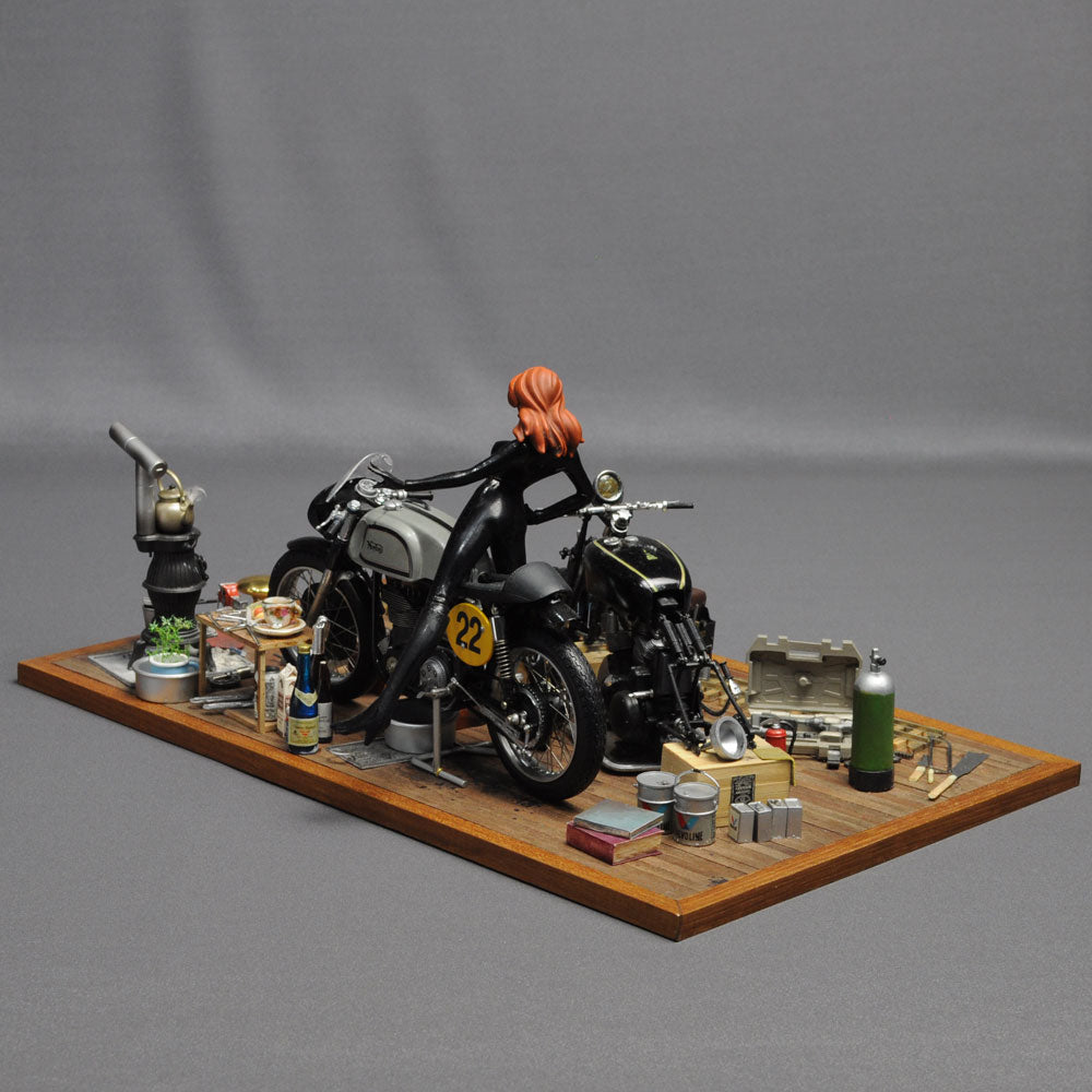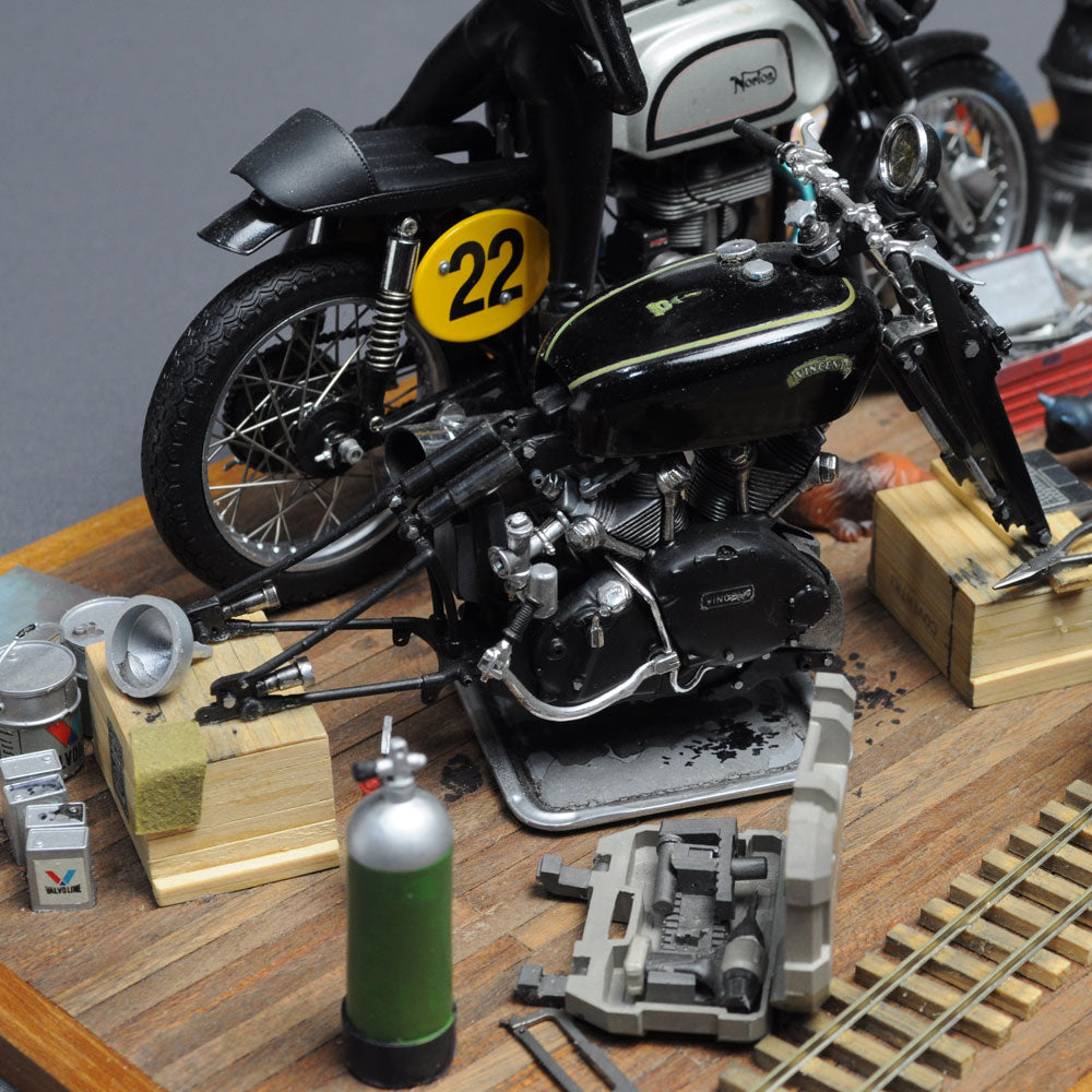 So I combined the small items I found in the Akihabara lending window box with the complete "Norton Manx" product and the engine part of the out-of-print "Vincent Lapide" kit by Matchbox, and lined up the Micro Ace C5345 modified to live steam specification.