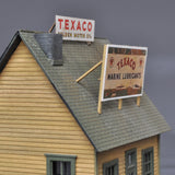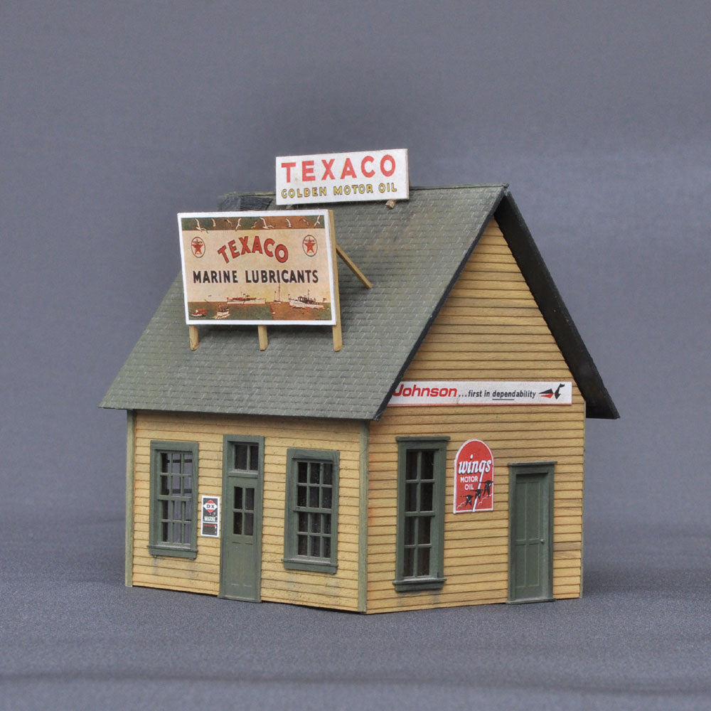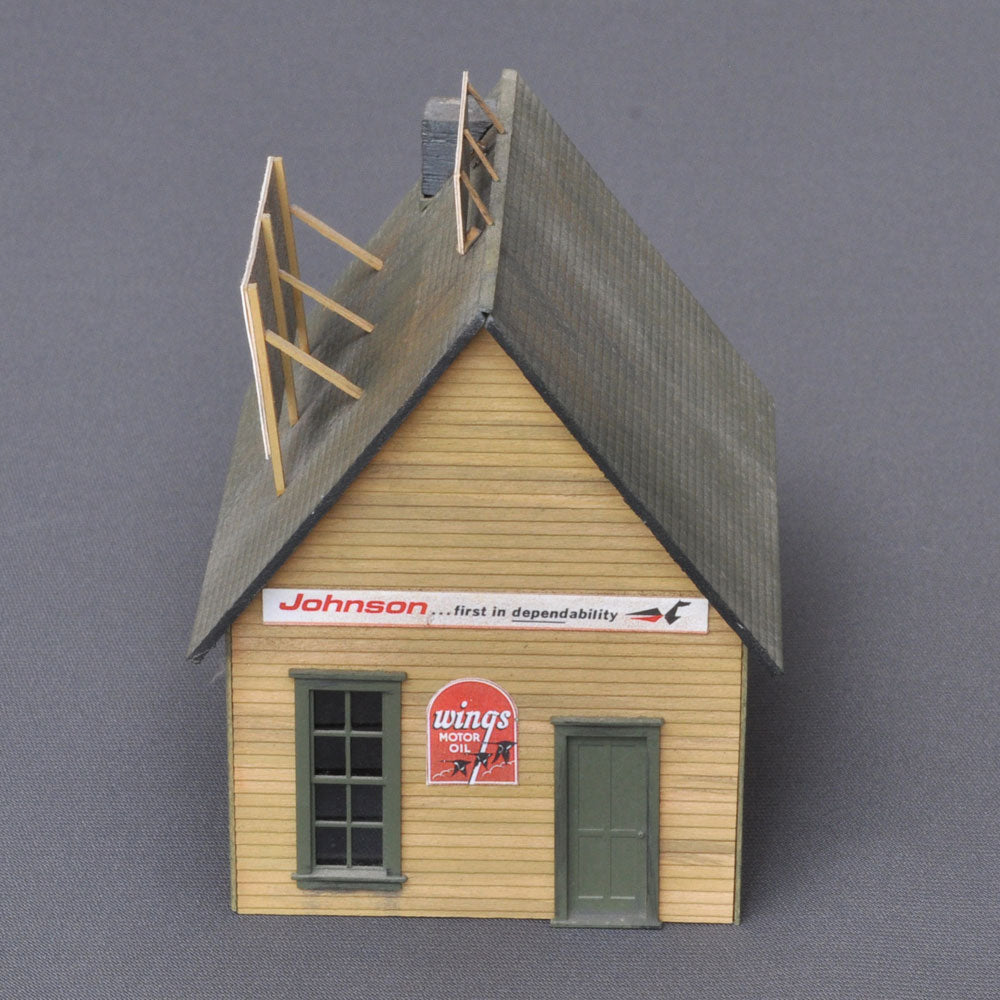 This is Mr Miyashita's original wooden structure. It is a simple structure but a desirable one to spice up the layout with its small footprint and eye catching signage.