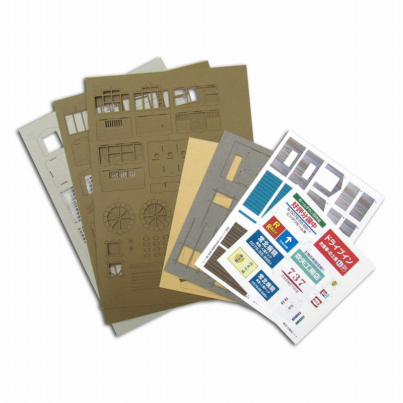 内容物:激光板 A 至 E(5 张)、屋顶和招牌板(各 1 张)、组装说明