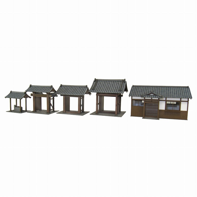 这是一系列神社和寺庙套装中的第三个,包括三种不同类型的大门(四角门、药门和高来门)、一个手浇水屋和一个神社办公室。