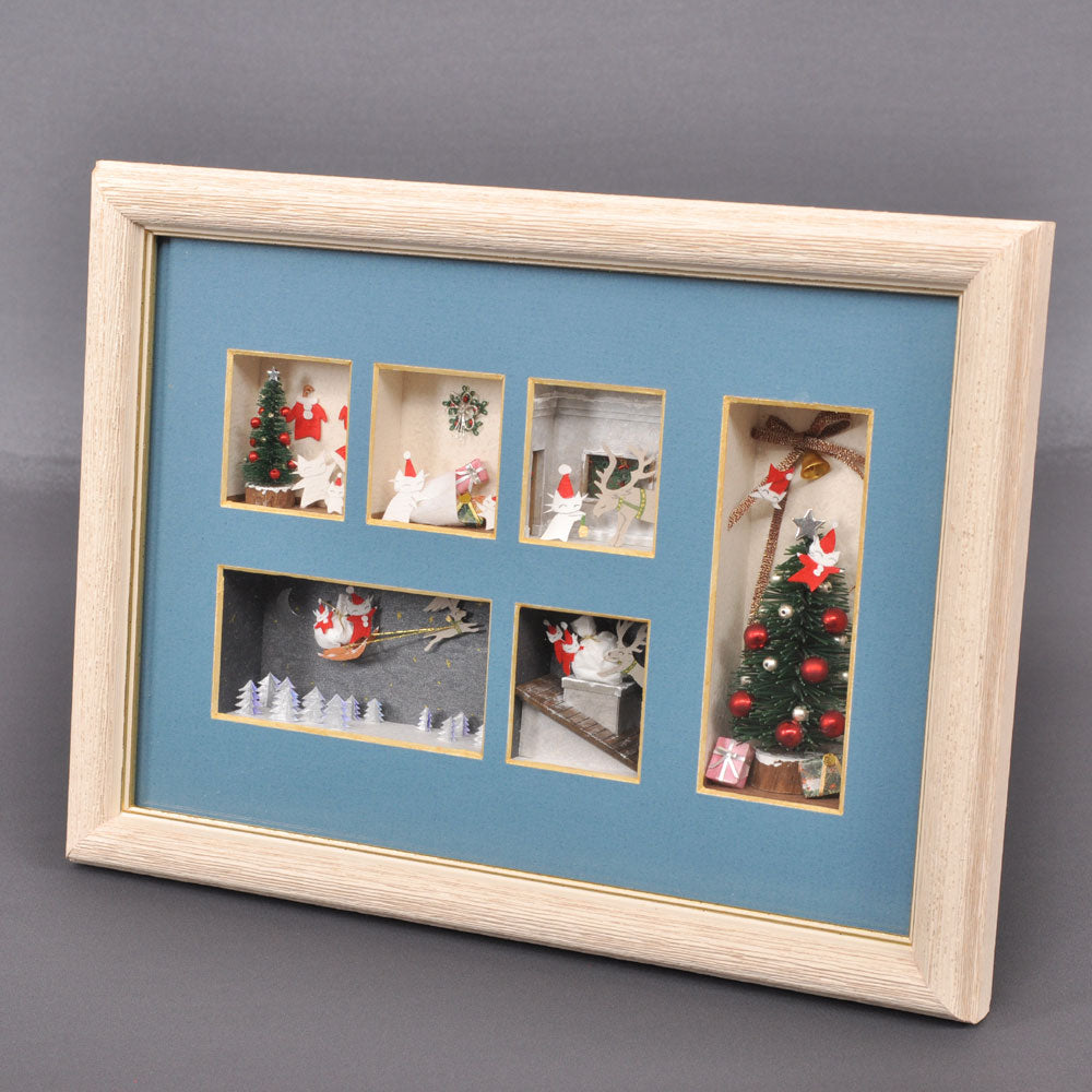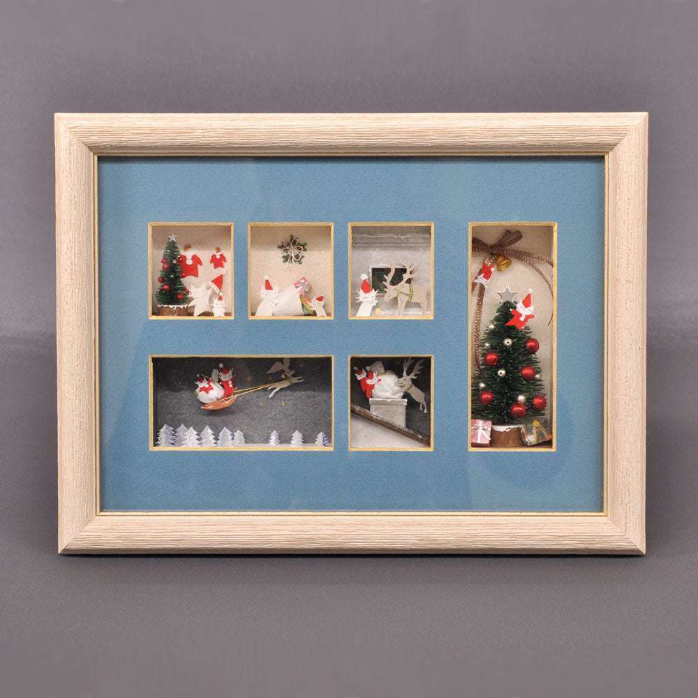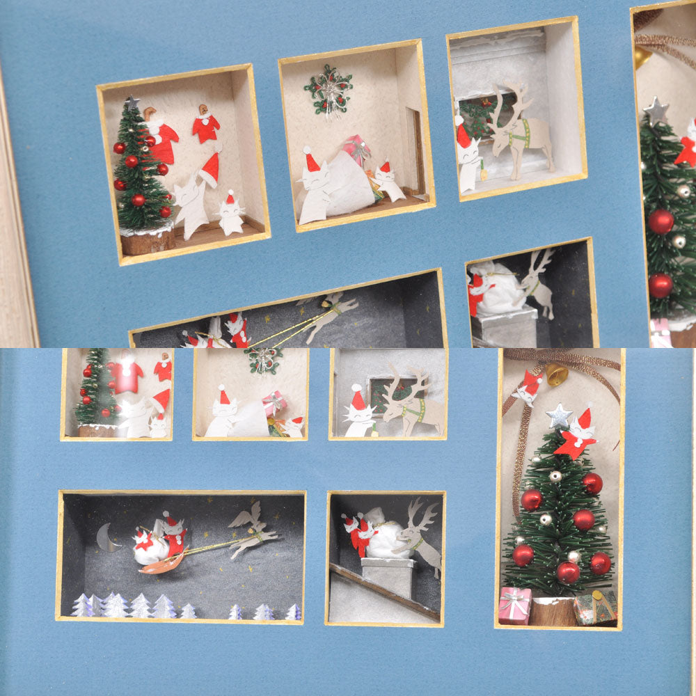 这一系列的小立体模型在一个框架中展示了一个带有“Kamineko”的场景。