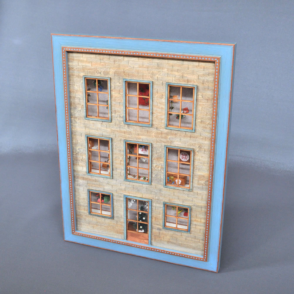 材料:纸、亚克力、纸粘土、丝柏木、布等。