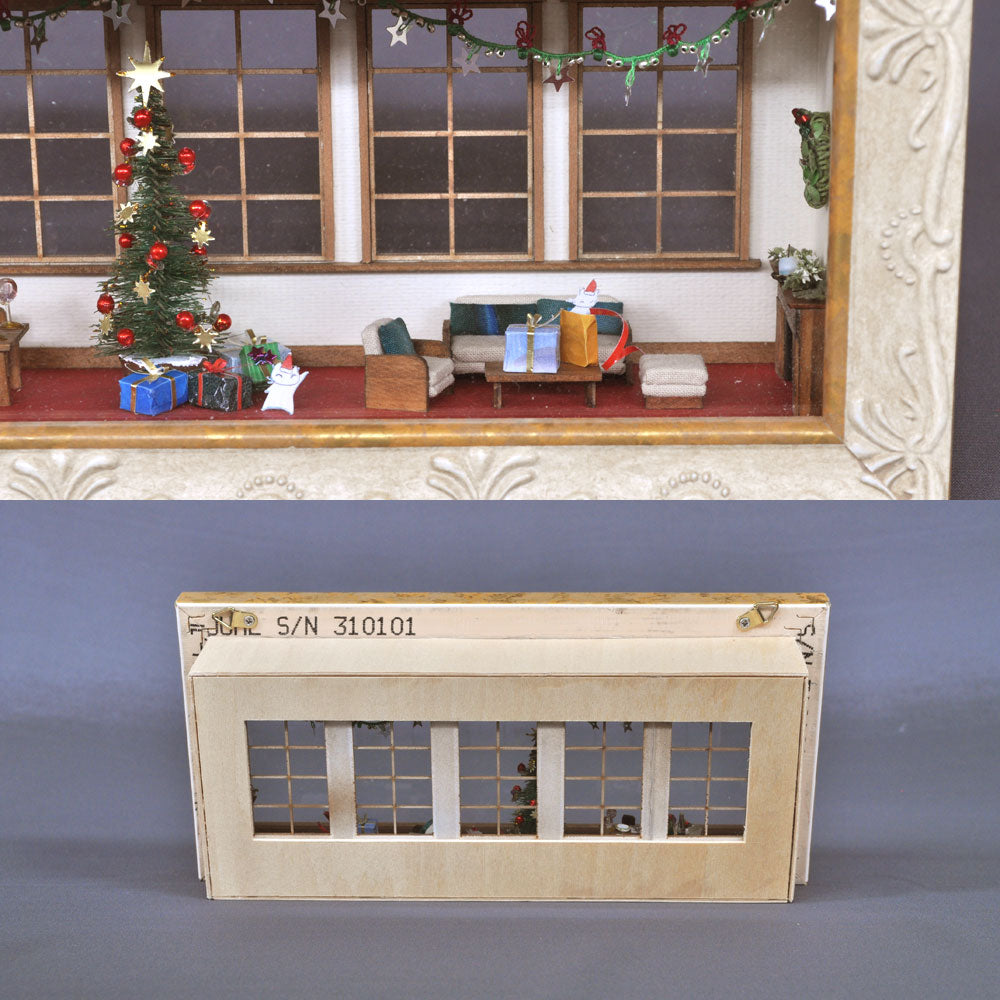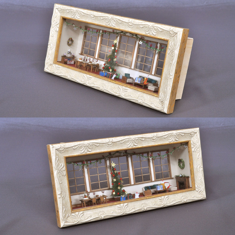这一系列带框的小立体模型描绘了一个带有“Kamineko”的场景。