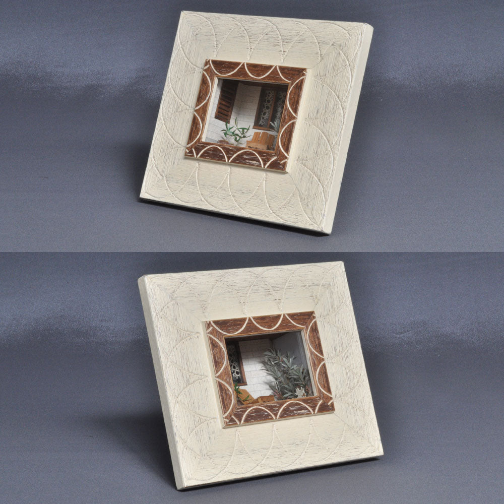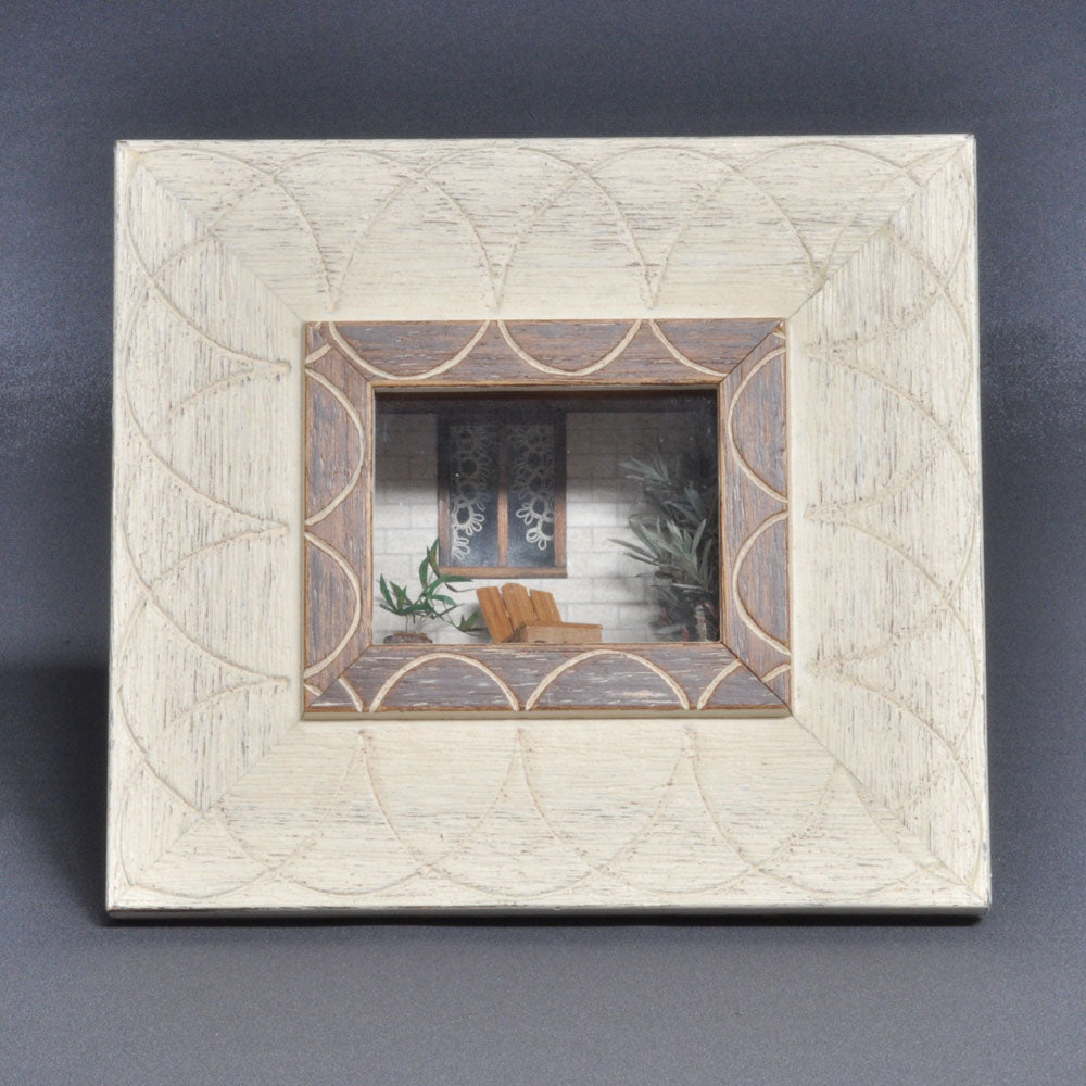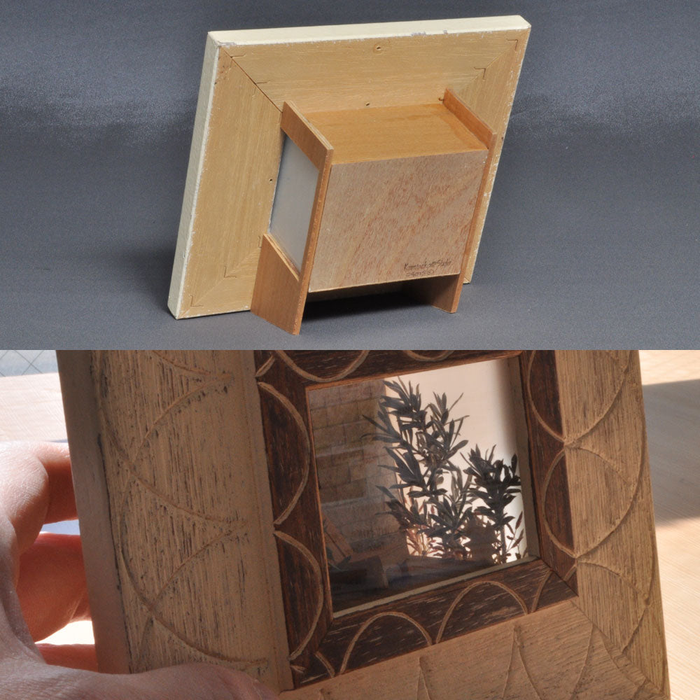 这一系列的小立体模型在一个框架中展示了一个带有“Kamineko”的场景。