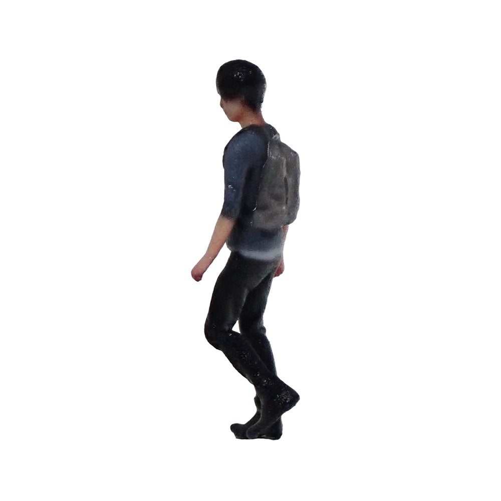 064-00003 Man walking with a gray backpack on his back : Tiny Tales - Colored 1:64
