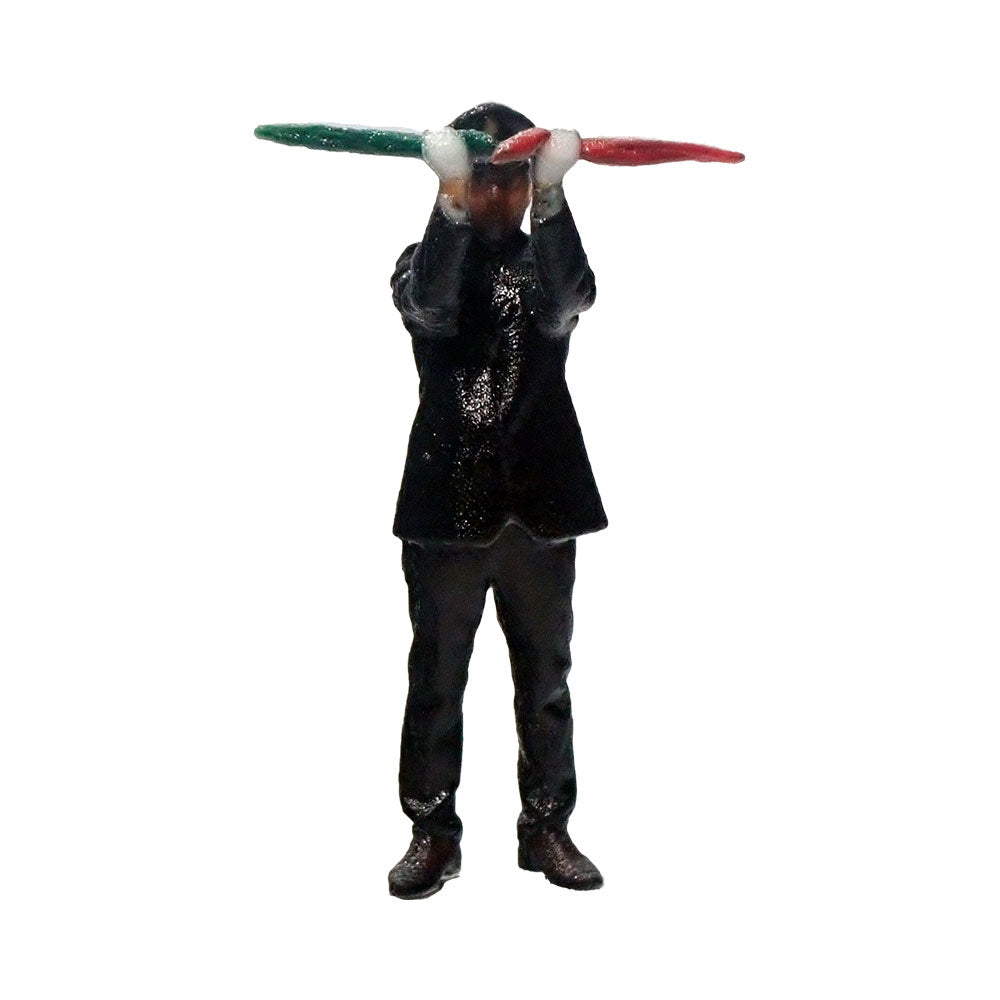 This figure features the latest 3D scanning and full-color 3D printing technology to sculpt a working railroader as he or she is.