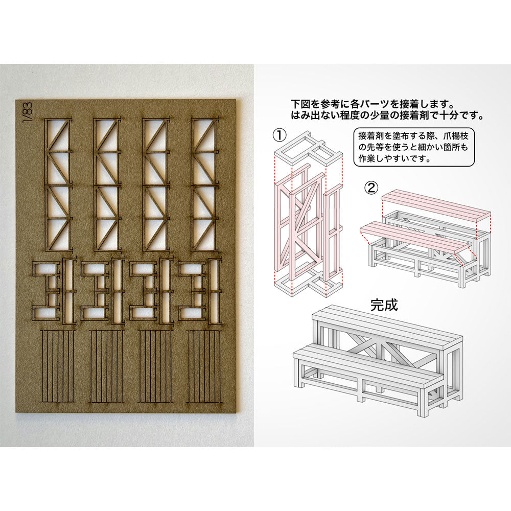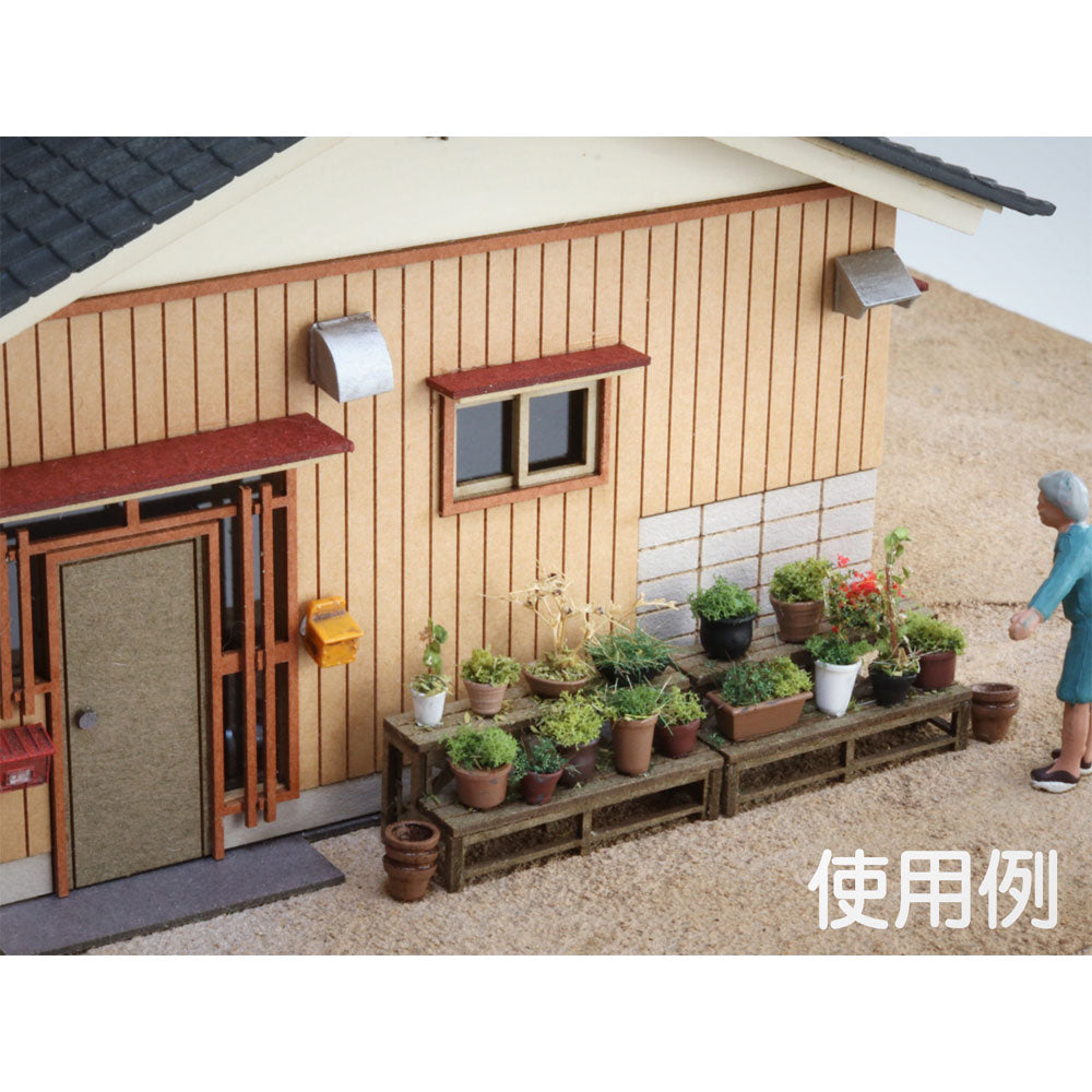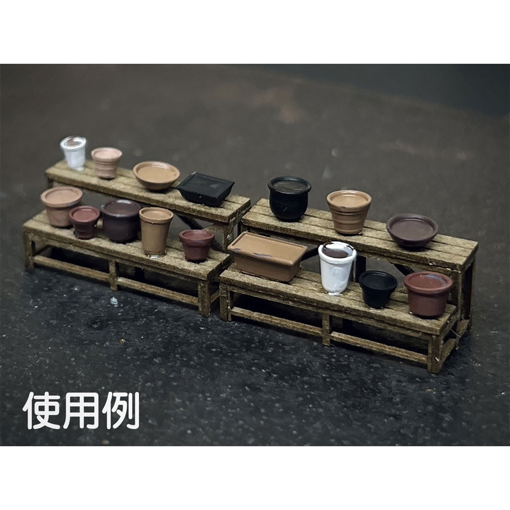 Table for arranging potted plants seen in back alleys of residential areas and old storefronts. 4 sets.