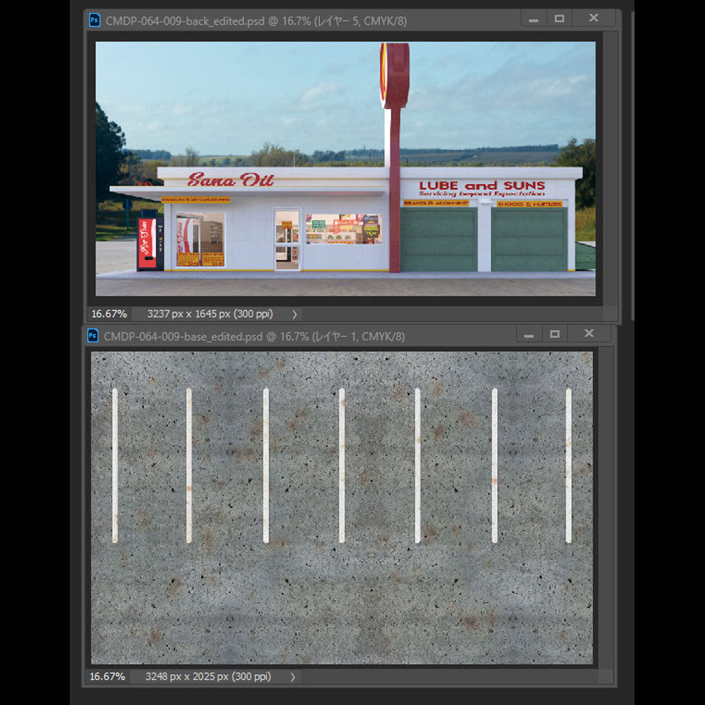 The bottom panel and background of the case are printed with scenes suitable for miniature cars, so you can enjoy an atmospheric diorama display simply by arranging your miniature cars and miniatures!